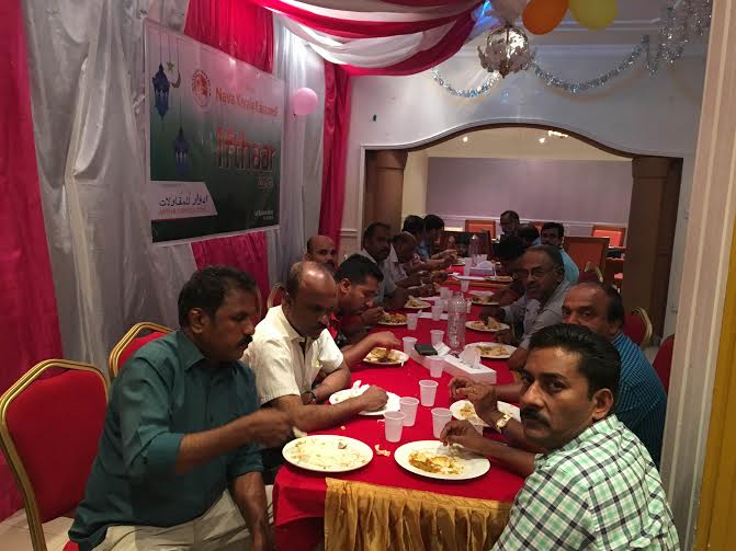 ബഹ്റൈൻ നവകേരള കലാവേദിയുടെ നേതൃത്വത്തിൽ ഇഫ്താർ സംഗമം സൽമാനിയ സൽക്കാര റെസ്റ്റോറന്റ് ഹാളൽ വച്ച് അദ്യാർ കോൺട്രാക്ടിങ് കമ്പനിയിലെ തൊഴിലാളികളെ പങ്കെടുപ്പിച്ചുകൊണ്ട് സംഘടിപ്പിച്ചു. പ്രസ്തുത പരിപാടിയിൽ നവകേരളാ കലാവേദിയുടെ പ്രവർത്തകരും കുടുബാംഗങ്ങളും പങ്കെടുത്തു. ആചാര പ്രകാരമുള്ള നോമ്പുതുറ വിഭവങ്ങളും സമൂഹ വിരുന്നും നടന്നു.