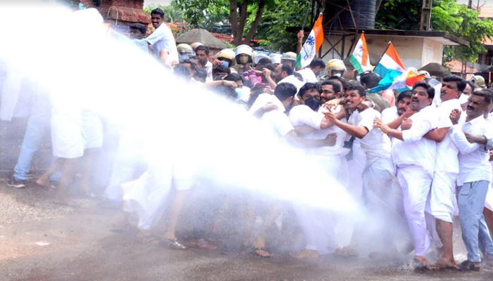 കണ്ണൂർ നഗരത്തെ മുൾമുനയിലാക്കി കോൺഗ്രസ് കളക്ടറേറ്റ് മാർച്ച്; ജലപീരങ്കിക്കെതിരെ അക്രമം നടത്തിയ 400 പ്രവർത്തകർക്കെതിരെ കേസ്