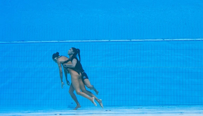 മത്സരത്തിനിടെ യു.എസ് നീന്തൽ താരം അനിറ്റ അൽവാരസ് ബോധരഹിതയായി പൂളിന്റെ ആഴങ്ങളിലേക്ക് പതിക്കുകയായിരുന്നു. ഇതോടെ അപകടം മണത്ത അനിറ്റയുടെ പരിശീലകയായ ആന്ദ്രേ ഫ്യുവെന്റസ് ഉടൻ തന്നെ പൂളിലേക്ക് എടുത്ത് ചാടി താരത്തെ രക്ഷപ്പെടുത്തുകയായിരുന്നു.