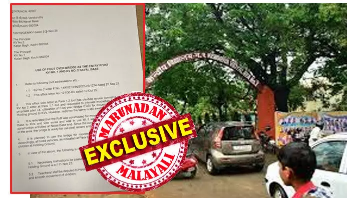 വിദ്യാലയത്തിന്റെ ചെയര്മാന് കൂടിയായ ഐ.എന്.എസ് വെണ്ടൂരുത്തിയുടെ കമാന്ഡിംഗ് ഓഫീസറുടേതാണ് ഉത്തരവ്. 11/11/2025, ചൊവ്വാഴ്ച മുതല് വാടകക്കെടുത്ത എല്ലാ വാഹനങ്ങളും വിദ്യാര്ത്ഥികളെ ഐ.എന്.എസ് വെണ്ടൂരുത്തിയിലെ ഹോള്ഡിംഗ് ഗ്രൗണ്ടില് ഇറക്കണം. വിദ്യാര്ത്ഥികള് വിദ്യാലയത്തിലേക്ക് വരാനും സ്കൂളിന് ശേഷം തിരികെ പോകാനും കാല്നടമേല്പ്പാലം ം ഉപയോഗിക്കണം. ബാല്വാടിക വിദ്യാര്ത്ഥികളെ രക്ഷിതാക്കള്ക്ക് നേരിട്ട് വിദ്യാലയത്തില് കൊണ്ടുവന്ന് വിടാവുന്നതാണ്. പൊതുഗതാഗത മാര്ഗ്ഗങ്ങളില് വരുന്ന വിദ്യാര്ത്ഥികളും രക്ഷിതാക്കള് സ്വന്തം വാഹനങ്ങളില് കൊണ്ടുവരുന്ന വിദ്യാര്ത്ഥികളും കട്ടാരി ബാഗ് പ്രവേശന കവാടത്തില് നിന്നുള്ള ആക്സസ് റോഡ് തുടര്ന്നും ഉപയോഗിക്കണമെന്നാണ് നിര്ദ്ദേശം. ഇത് വാടകക്കെടുത്ത ബസുകളിലോ/വാനുകളിലോ/ഓട്ടോറിക്ഷകളിലോ വരുന്ന വിദ്യാര്ത്ഥികള്ക്ക് മാത്രമുള്ളതാണ്. എല്ലാ ക്ലാസ്സ് ടീച്ചര്മാരും ചെയര്മാന്റെ കത്തും ഈ സന്ദേശവും ക്ലാസ്സ് ഗ്രൂപ്പുകളിലേക്ക് കൈമാറണമെന്ന് അഭ്യര്ത്ഥിക്കുന്നുവെന്നായിരുന്നു സ്കൂളിന്റെ വിചിത്ര ഉത്തരവ്.
