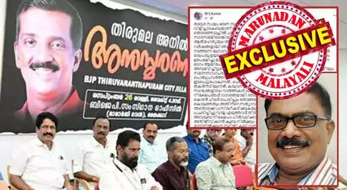 'കൂടെ നില്ക്കും എന്ന് പ്രതീക്ഷിക്കുന്നവര് സഹകരിക്കാതെ മാറിനില്ക്കുന്ന സ്ഥിതി വന്നത് കൊണ്ട് കൂടിയാകാം പാവം അനിലിന് സ്വന്തം മക്കളെ വരെ മറന്നു ഈ കടുംകൈ ചെയ്യേണ്ടി വന്നത്' എന്നും കുമാര് തന്റെ ഫെയ്സ്ബുക്കില് കുറിച്ചു. തദ്ദേശ തിരഞ്ഞെടുപ്പില് തിരുവനന്തപുരം നഗരസഭയില് ചര്ച്ചയാകാന് പോകുന്നത് കൗണ്സിലര് അനിലിന്റെ ആത്മഹത്യയും അതിലേക്കു നയിച്ച കാരണങ്ങളും ആയിരിക്കുമെന്നും ബിജെപി മുന് വക്താവ് മുന്നറിയിപ്പ് നല്കുന്നു. അനിലിന്റെ സഹകരണ സംഘത്തില് വായ്പ തിരിച്ചടയ്ക്കാത്തവരുടെ പേര് വിവരങ്ങള് വരുംദിവസങ്ങളില് ഫെയ്സ്ബുക്കിലൂടെ പുറത്ത് വിടുമെന്നും എം.എസ്.കുമാര് വ്യക്തമാക്കിയിരുന്നു. എന്നാല് തല്കാലം വിവാദങ്ങളുണ്ടാക്കാന് കുമാറില്ല. ബിജെപി നേതൃത്വം കുമാറുമായി സംസാരിച്ചിട്ടുണ്ട്. പ്രശ്നങ്ങള് വഷളാക്കരുതെന്ന് ആര് എസ് എസ് നേതൃത്വവും സന്ദേശം കൈമാറിയിട്ടുണ്ട്. ഈ സാഹചര്യത്തില് കുമാര് തല്കാലം കാത്തിരിക്കും. തിരുവിതാംകൂര് സഹകരണ സംഘത്തിലെ നിക്ഷേപകര്ക്ക് എല്ലാം പണം ഉറപ്പാക്കാനാണ് കുമാറിന്റെ ശ്രമം. അതിനിടെ കുമാറിന്റെ പേസ്റ്റ് സിപിഎം ഏറ്റുപിടിച്ചിട്ടുണ്ട്.