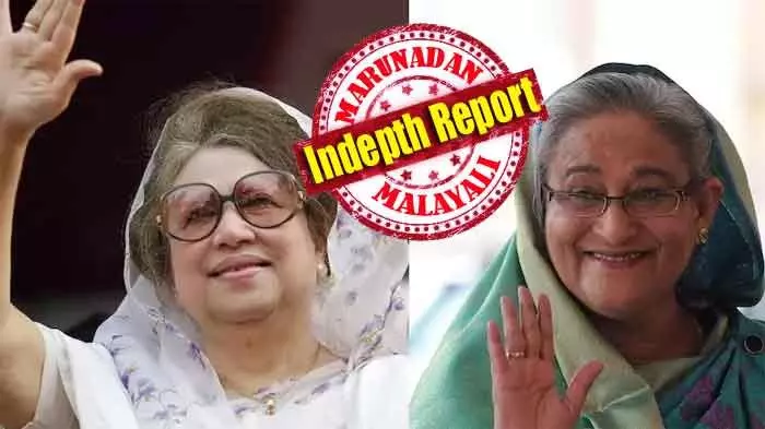 ഫോബ്സ് മാസിക പുറത്തിറക്കുന്ന, ലോകത്തെ ഏറ്റവും ശക്തരായ സ്ത്രീകളുടെ പട്ടികയില് ഉള്പ്പെട്ടവരായിരുന്നു ഈ രണ്ട് മുന് വനിതാ പ്രധാനമന്ത്രിമാരും. രണ്ട് സ്ത്രീകള് തമ്മില് ക്ലാഷുണ്ടാവുമ്പോള്, പൊതുവെ കരുതുക അത് ഈഗോയുടെയും അധികാരത്തര്ക്കത്തിന്റെ പ്രശ്നമായിരിക്കും എന്നാണ്. പക്ഷേ അങ്ങനെയല്ല. രക്തമൊഴുകിയ പോരാട്ടത്തിന്റെ കഥകൂടിയാണത്. ഷേഖ് ഹസീനയുടെ പിതാവ്, മുജീബുര് റഹ്മാനെ വെടിവെച്ച് കൊന്നതിന് പിന്നില് ഖാലിദ സിയയുടെ ഭര്ത്താവിനുകൂടി പങ്കുണ്ടെന്നാണ് ആരോപണം. ഖാലിദ സിയയുടെ ഭര്ത്താവ്, സിയാവുര് റഹ്മാന്റെ കൊലയില് ഷേഖ് ഹസീനയുടെ അനുയായികളുടെ പങ്കും സംശയിക്കുന്നു. തന്റെ പിതാവിന്റെ മരണത്തിന് ഉത്തരവാദികളെ ഒന്നൊന്നായി തൂക്കിക്കൊന്ന് വര്ഷങ്ങള്ക്കശേഷം, ഹസീന പ്രതികാരദാഹിയാപ്പോള് ഖാലിദ സിയ ശരിക്കും അനുഭവിച്ചു. അവരുടെ മകന് ചികിത്സകിട്ടാതെ മരിച്ചു! ഈ രീതിയില് രക്തം ചിന്തുന്ന കുടിപ്പകയാണ് രണ്ട് വനിതകള് തമ്മിലുണ്ടായത്. അതിന്റെ ഫലമായി ഒരു രാഷ്ട്രം തന്നെ വല്ലാത്ത രീതിയില് പിന്നോട്ടടിച്ചു.