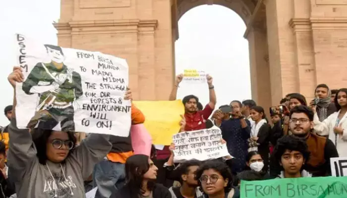 പുറത്തിറങ്ങാൻ കഴിയാത്ത അവസ്ഥ; വിഷ പുകയാൽ നിറഞ്ഞ് പരിസരം; ഡൽഹിയിലെ വായുമലിനീകരണത്തിനെതിരെ ഇന്ത്യാഗേറ്റിന് മുന്നിൽ പ്രതിഷേധം