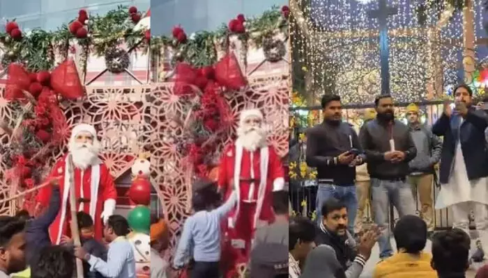 സാന്താക്ലോസിനെ കാണേണ്ടെന്ന മുദ്രാവാക്യവുമായി റായ്പൂരിലെ മാളിൽ ആക്രമണം; യുപിയിൽ ദേവാലയത്തിന് മുന്നിൽ ഹനുമാൻ ചാലിസ ചൊല്ലി പ്രതിഷേധം; ക്രിസ്മസ് ദിനത്തിലും ആക്രമണം തുടരുന്നു