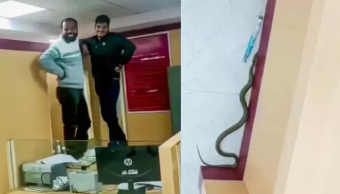 ബാങ്കിനുള്ളിലേക്ക് പാമ്പ് ഇഴഞ്ഞെത്തിയതോടെ ജീവനക്കാർ പരിഭ്രാന്തരായി കസേരകളിലും കൗണ്ടറുകൾക്ക് മുകളിലേക്കും കയറി. ജീവനക്കാർ പേടിച്ച് പരക്കം പായുന്നതിന്റെ വീഡിയോ ദൃശ്യങ്ങൾ സമൂഹ മാധ്യമങ്ങളിൽ വൈറലാണ്. ബഹളങ്ങൾക്കിടയിലും പാമ്പ് തറയിലൂടെ ഇഴഞ്ഞു നീങ്ങുന്നതും ദൃശ്യങ്ങളിൽ കാണാം.