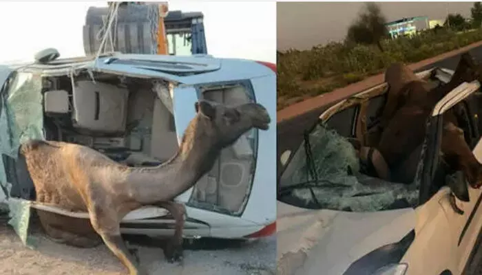 റോഡിന്റെ വശങ്ങളിൽ അലഞ്ഞുതിരിയുകയായിരുന്ന ഒട്ടകം പെട്ടെന്ന് ഓടിക്കൊണ്ടിരുന്ന കാറിന് മുന്നിലേക്ക് വരികയായിരുന്നുവെന്ന് ദൃക്സാക്ഷികൾ പറയുന്നു. അപ്രതീക്ഷിതമായതിനാൽ ഡ്രൈവർക്ക് ബ്രേക്ക് ചെയ്യാനോ അപകടം ഒഴിവാക്കാനോ കഴിഞ്ഞില്ല. കാറിന്റെ ബമ്പർ, ബോണറ്റ്, വിൻഡ്സ്ക്രീൻ എന്നിവ തകർന്നു.