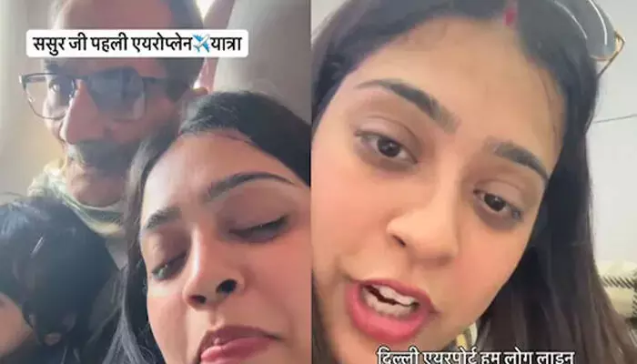 ഡൽഹി: ആദ്യമായി വിമാനത്തിൽ യാത്ര ചെയ്യുന്ന അമ്മായിഅച്ഛന്റെ നിഷ്കളങ്കമായ പ്രതികരണങ്ങൾ പങ്കുവെച്ച മരുമകളുടെ വീഡിയോ സോഷ്യൽ മീഡിയയിൽ വൈറലാകുന്നു. ഹർഷിത എന്ന യുവതിയാണ് തൻ്റെ അമ്മായിഅച്ഛൻ്റെ മനം കവരുന്ന വീഡിയോ ഇൻസ്റ്റാഗ്രാമിൽ ഷെയർ ചെയ്തത്.