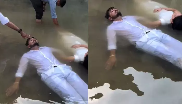അയ്യോ..ഇവർക്ക് ജീവനുണ്ടോ? ഒരു തടാകത്തിൽ പൊന്തികിടക്കുന്ന നവദമ്പതികൾ; കണ്ണുകൾ അടച്ച് അനങ്ങാതെ കിടപ്പ്; പ്രീ വെഡ്ഡിംഗ് ഫോട്ടോഷൂട്ടിന് വ്യാപക വിമർശനം