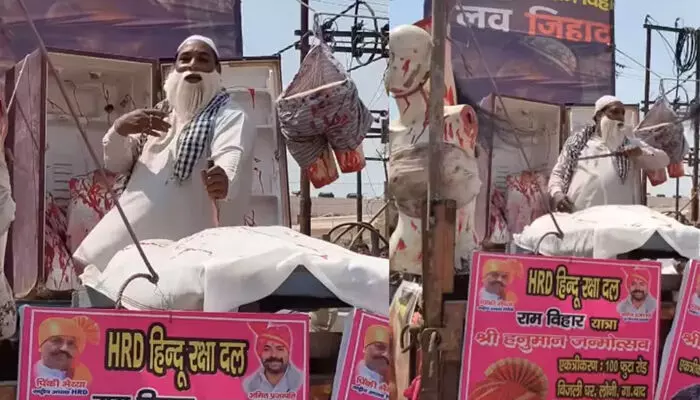 ഗാസിയാബാദ്: ഉത്തർപ്രദേശിലെ ഗാസിയാബാദിൽ രാമനവമി ഘോഷയാത്രയ്ക്കിടെ ‘ലൗ ജിഹാദ്’ പ്രമേയമാക്കി തീവ്ര ഹിന്ദുത്വ സംഘടന നടത്തിയ ടാബ്ലോ പ്രദർശനം വിവാദമാകുന്നു. വലതുപക്ഷ ഗ്രൂപ്പായ ഹിന്ദു രക്ഷാ ദൾ ഞായറാഴ്ച സംഘടിപ്പിച്ച ഘോഷയാത്രയിലാണ് അക്രമത്തിന് ആഹ്വാനം നൽകുന്ന തരത്തിലുള്ള ദൃശ്യങ്ങൾ ഉൾപ്പെടുത്തിയത്. സംഭവത്തിൽ പോലീസ് അന്വേഷണം പ്രഖ്യാപിച്ചു.