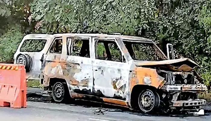 ആംബുലന്സിന് തീപിടിച്ചു; ഒരു ദിവസം മാത്രം പ്രായമായ കുഞ്ഞും അച്ഛനും ഉൾപ്പെടെ 4 മരണം