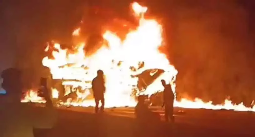 കണ്ടെയ്നര് ലോറി ബസുമായി കൂട്ടിയിടിച്ച് 9 പേര് മരിച്ചു; ദുരന്തം കര്ണാടക ചിത്രദുര്ഗയില് വന് അപകടം