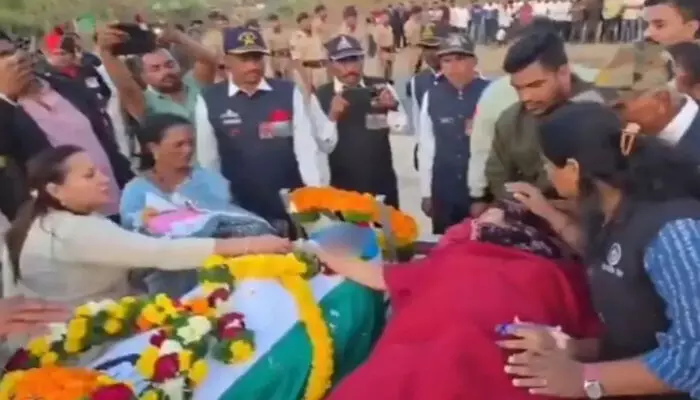സതാരയിലെ പാര്ലി സ്വദേശിയായിരുന്നു പ്രമോദ് ജാദവ്. ഇയാളുടെ ഭാര്യയെ പ്രസവത്തിനായി പ്രാദേശിക ആശുപത്രിയില് പ്രവേശിപ്പിച്ചിരിക്കെയാണ് ദുരന്തം സംഭവിച്ചത്. സ്ട്രക്ചറില് കിടന്ന് ജാദവിനെ കൈനീട്ടി തൊടാന് ശ്രമിക്കുന്ന ഭാര്യയുടെയും, ബന്ധുവിന്റെ കൈകളിലിരിക്കുന്ന കുഞ്ഞിന്റെയും ദൃശ്യങ്ങള് ഹൃദയംനുറുക്കുന്നുവെന്ന് ഗ്രാമവാസികള് പറയുന്നു. പൂര്ണ സൈനിക ബഹുമതികളോടെ ഞായറാഴ്ചയാണ് ജാദവിന്റെ സംസ്കാരം നടന്നത്.