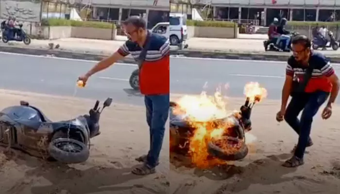 നിരവധി തവണ പരാതി നൽകിയിട്ടും കാര്യമായ പ്രതികരണമോ പരിഹാരമോ ലഭിക്കാതെ വന്നതോടെയാണ് യുവാവ് സ്വന്തം സ്കൂട്ടർ ഷോറൂമിന് മുന്നിൽ പെട്രോളൊഴിച്ച് കത്തിച്ചത്. സംഭവത്തിന്റെ ദൃശ്യങ്ങൾ സാമൂഹ്യ മാധ്യമങ്ങളിൽ വ്യാപകമായി പ്രചരിക്കുന്നുണ്ട്. വാഹനം പൂർണമായും കത്തിനശിച്ചു.