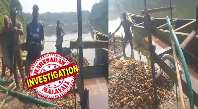 മോട്ടോര് പമ്പ് സെറ്റ് ഉപയോഗിച്ച് വെള്ളം ഒഴിവാക്കി മണല് ഊറ്റി സ്വര്ണം അരിച്ചെടുക്കല്