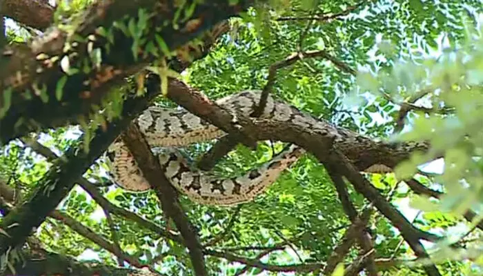 പാമ്പ് മരത്തിൽ നിന്നിറങ്ങുമോ എന്ന് നിരീക്ഷിച്ചു വരികയാണ്. ഒഴുക്കിൽപ്പെട്ട് ഇവിടെയെത്തിയതാകാമെന്ന് ഉദ്യോഗസ്ഥർ പ്രാഥമിക നിഗമനം. പാമ്പിനെ സുരക്ഷിതമായി പിടികൂടി വനമേഖലയിലേക്ക് മാറ്റാനാണ് അധികൃതരുടെ തീരുമാനം. സമീപത്തെ കടയുടമകളും വഴിയാത്രക്കാരും വനംവകുപ്പിനെ വിവരം അറിയിച്ചത്.