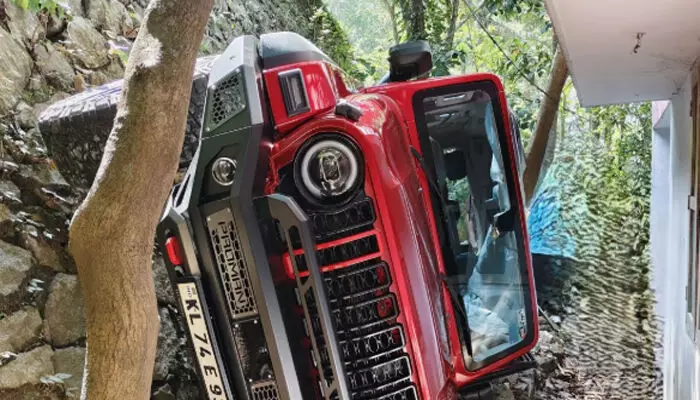 നേരെ വന്ന് മരത്തിലിടിച്ചതോടെ നിയന്ത്രണം മുഴുവൻ നഷ്ടപ്പെട്ട ആ 'ഥാർ'; പെട്ടെന്ന് 25 അടി താഴ്ചയിലുള്ള കുഴിയിലേക്ക് പതിച്ച് അപകടം; വണ്ടിയിൽ ഉണ്ടായിരുന്ന അഞ്ച് പേർ ആശുപത്രിയിൽ