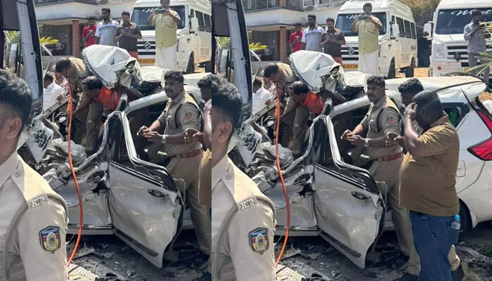 നാലുപേർ സഞ്ചരിച്ച എർട്ടിഗ കാർ കൂട്ടിയിടിയിൽ പൂർണ്ണമായും തകർന്നു. അപകടത്തിൽപ്പെട്ട കാറിൽ യാത്ര ചെയ്തിരുന്നവരാണ് മരണപ്പെടുകയും പരിക്കേൽക്കുകയും ചെയ്തത്. മരിച്ചയാളെ പൊലീസും ഫയർഫോഴ്സും ചേർന്ന് വാഹനം വെട്ടിപ്പൊളിച്ചാണ് പുറത്തെടുത്തത്. കാർ ഡ്രൈവർ ഉറങ്ങിപ്പോയതാണ് അപകടകാരണമെന്നാണ് പ്രാഥമിക നിഗമനം.