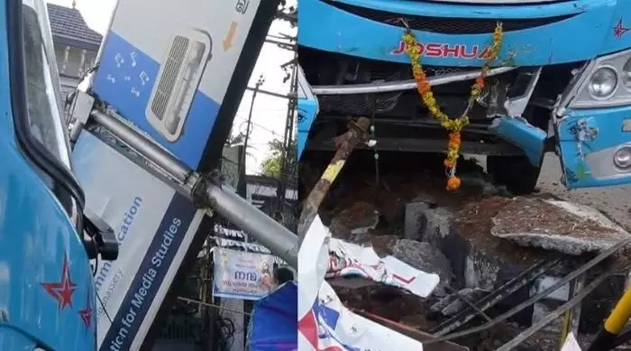 സ്വകാര്യ ബസ് ഡ്രൈവർക്ക് നെഞ്ചുവേദന; നിയന്ത്രണം വിട്ട ബസ് ഡിവൈഡറിലേക്ക് ഇടിച്ചുകയറി അപകടം; മൂന്ന് പേർക്ക് പരിക്ക്; ഒഴിവായത് വൻ അപകടം