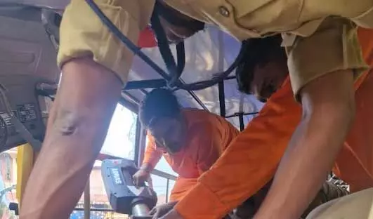 പന്തളം: എം.സി റോഡില് കുളനടയില് സ്കൂള് ബസ്, ലോറി, കാര് എന്നിവ കൂട്ടിയിടിച്ച് ഗതാഗത തടസം. തിങ്കളാഴ്ച രാവിലെ ഏഴു മണിയോടെ മാന്തുക ഭാഗത്താണ് അപകടം ഉണ്ടായത്. സ്കൂള് ബസിനുള്ളില് കുടുങ്ങിപ്പോയ ഡ്രൈവറെ ഏറെ നേരത്തേ പരിശ്രമത്തിന് ശേഷം ഫയര് ഫോഴ്സ് പുറത്ത് എടുത്തു.