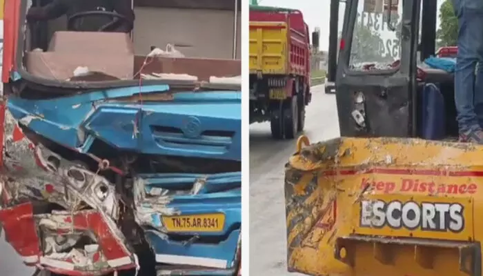 അപകടത്തെത്തുടർന്ന് ഈ ഭാഗത്ത് ഗതാഗതക്കുരുക്ക് അനുഭവപ്പെട്ടു. തകരാറിലായ ബ്രേക്ക് കാരണമാണ് അപകടമുണ്ടായതെന്ന് ലോറി ഡ്രൈവർ വിശദീകരിച്ചു.