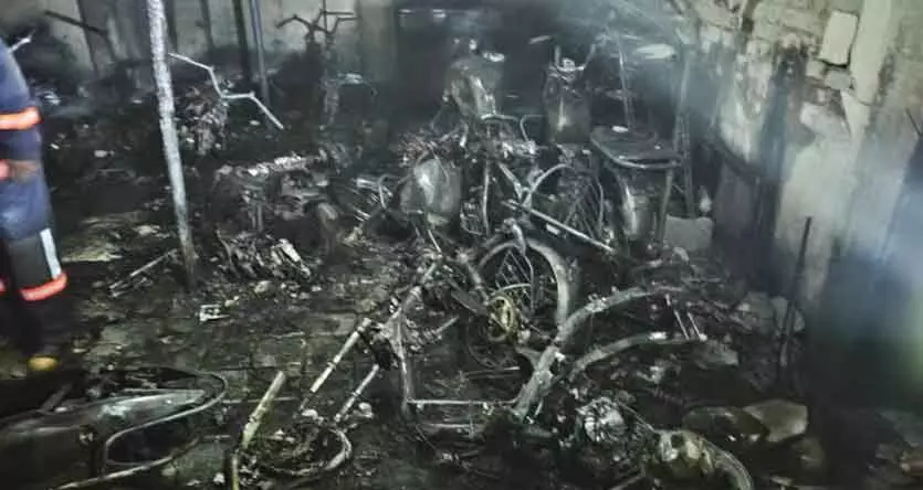 അടൂരില് ടിവിഎസിന്റെ അംഗീകൃത സര്വീസ് സെന്ററില് തീപിടുത്തം: ഇരുപത്തഞ്ചോളം ഇരുചക്രവാഹനങ്ങള് കത്തി നശിച്ചു: മൂന്നു യൂണിറ്റ് ഫയര്ഫോഴ്സിന്റെ പ്രയത്നം സമീപ കെട്ടിടങ്ങളിലേക്ക് തീ പടരുന്നത് തടഞ്ഞു