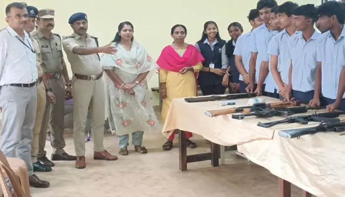 'കോമെമ്മോറേഷൻ ഡേ' ആചരണം; കോട്ടയം മോഡൽ ഹെച്ച്എസ്എസ് സ്കൂളിൽ 'ആംസ് എക്സിബിഷൻ' നടത്തി പോലീസ് സേന