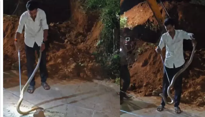 വൈകുന്നേരം അഞ്ചുമണിയോടെ ലക്ഷംവീട് കോളനിയിലേക്കുള്ള പ്രധാന പാതയോരത്താണ് പാമ്പുകളെ കണ്ടെത്തിയത്. വിവരമറിഞ്ഞ് ആർ. ജയേഷ് സ്ഥലത്തെത്തിയപ്പോഴേക്കും പാമ്പുകൾ സമീപത്തെ പറമ്പിലെ മൺതിട്ടയിലുള്ള മാളത്തിലേക്ക് കയറിപ്പോയിരുന്നു. ഉടൻതന്നെ ഒരു പാമ്പിനെ പിടികൂടാൻ സാധിച്ചെങ്കിലും രണ്ടാമത്തേത് മാളത്തിനുള്ളിൽ ഒളിച്ചു.