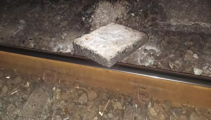റെയിൽവേ ട്രാക്കിൽ കോൺക്രീറ്റ് സ്ലാബ്; ഒഴിവായത് വൻ ദുരന്തം; അന്വേഷണം ആരംഭിച്ച് പൊലീസ്