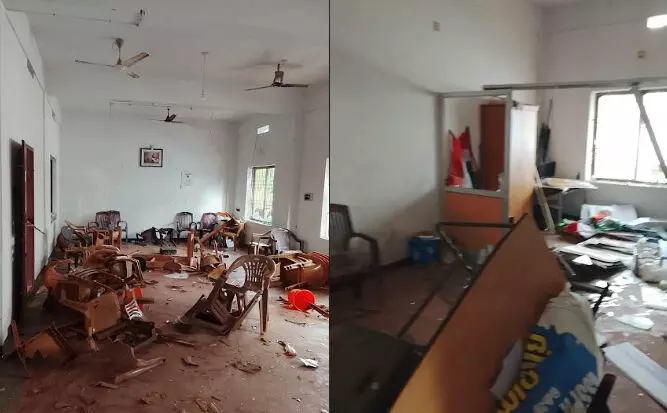 മയ്യിലില് കോണ്ഗ്രസ് മണ്ഡലം കമ്മിറ്റി ഓഫീസായ ഗാന്ധിഭവന് അടിച്ചു തകര്ത്തു