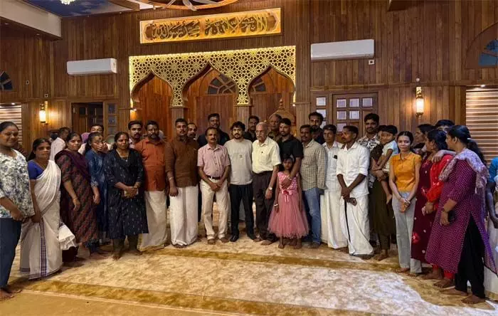 നവീകരിച്ച് ഉദ്ഘാടനത്തിന് തയ്യാറാകുന്ന ദാറുല് ഇസ്ലാം ജുമാ മസ്ജിദ് സന്ദര്ശിച്ച് പല്ലാരിമംഗലം ശിവക്ഷേത്ര ഭരണസമിതി; മതസൗഹൃദത്തിന്റെ മനോഹര ദൃശ്യം