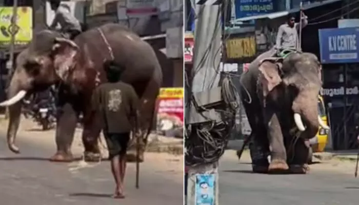 നായയെ കണ്ട് ഇടഞ്ഞ് 'ശിവൻ'; തല കുലുക്കി റോഡിലൂടെ വിരണ്ടോട്ടം; പരിഭ്രാന്തിയിൽ പിന്നാലെ ഓടി പാപ്പാന്മാർ; പണിമുടക്ക് ദിനമായതിനാൽ ഒഴിവായത് വൻ ദുരന്തം