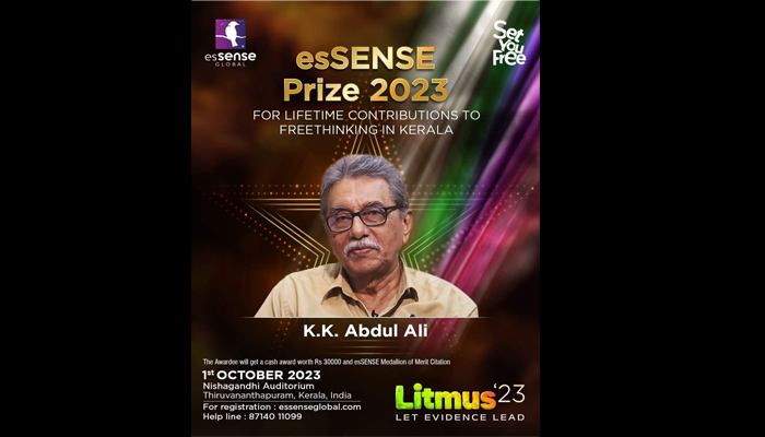 തിരുവനന്തപുരം: ശാസ്ത്രപ്രചരണവും സ്വതന്ത്രചിന്തയും നാസ്തികതയും പ്രചരിപ്പിക്കുന്നതിൽ സന്നദ്ധ പ്രവർത്തനം നടത്തുന്നവർക്ക് എസ്സെൻസ് ഗ്ലോബൽ നൽകുന്ന പുരസ്ക്കാരങ്ങൾ ഒക്ടോബർ ഒന്നിന് തിരുവനന്തപുരം നിശാഗന്ധിയിലെ ലിറ്റ്മസ് 2023 വേദിയിൽ സമ്മാനിക്കുമെന്ന് സംഘാടകർ അറിയിച്ചു. കെ. കെ. അബ്ദുൾ അലി, സന്തോഷ് മാത്യു, ഡോ രാഗേഷ്, അഭിലാഷ് കൃഷ്ണൻ, എന്നിവരാണ് ഇത്തവണ പുരസ്ക്കാരത്തിന് അർഹരായത്.