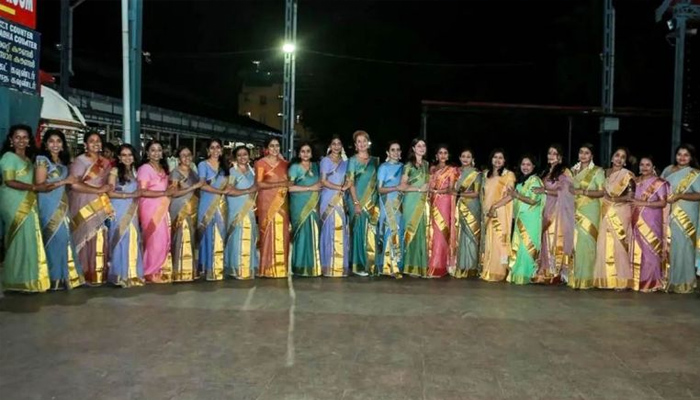 ഇന്തോ-ഇറ്റാലിയൻ വിവാഹ ചടങ്ങിൽ താരമായി കൈത്തറി സാരികൾ; മകളുടെ വിവാഹ ചടങ്ങിൽ അതിഥികൾക്ക് ധരിക്കാൻ വ്യത്യസ്ത നിറത്തിലുള്ള കൈത്തറി സാരി നൽകി സോഹൻ റോയിയും അഭിനി സോഹൻ റോയിയും