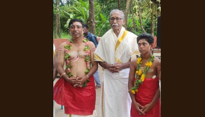 പതിനാലുവയസുകാരൻ ഇനി അഭിരാം പണിക്കർ; ചിറക്കൽ കോവിലകം ചാമുണ്ഡി കോട്ടം പെരുംകളിയാട്ടത്തിലെ അഗ്നിക്കോലധാരികൾക്ക് പട്ടും വളയും സമ്മാനിച്ചു