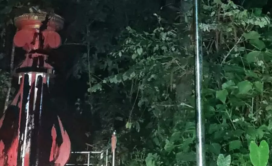 നീര്വേലി യില് യു.കെ കുഞ്ഞിരാമന് രക്തസാക്ഷി സ്തൂപം കരി ഓയില് ഒഴിച്ചു വികൃതമാക്കി; ആര് എസ് എസ് എന്നാരോപിച്ച് സിപിഎം