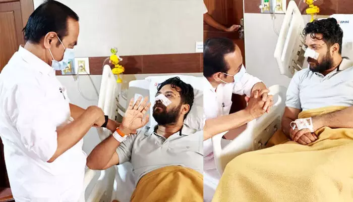 കോഴിക്കോട്: പൊലീസ് അതിക്രമത്തില് പരിക്കേറ്റ് ചികിത്സയില് കഴിയുന്ന ഷാഫി പറമ്പില് എം.പിയെ സന്ദര്ശിച്ച് പ്രതിപക്ഷ നേതാവ് വി.ഡി. സതീശന്. കോഴിക്കോട്ടെ സ്വകാര്യ ആശുപത്രിയിലെത്തി ഷാഫിയെ കണ്ട പ്രതിപക്ഷ നേതാവ് ആരോഗ്യ വിവരങ്ങള് ചോദിച്ചറിഞ്ഞു. ഷാഫി പറമ്പിലിനെ ആക്രമിക്കാന് ഗൂഢാലോചന നടത്തിയ മുതിര്ന്ന ഉദ്യോഗസ്ഥര് ഉള്പ്പെടെയുള്ളവര്ക്കെതിരെ നടപടിയെടുക്കണമെന്ന് മാധ്യമങ്ങളോട് പറഞ്ഞു. പോലീസുകാര് രാജാവിനേക്കാള് വലിയ രാജഭക്തി കാട്ടുകയാണെന്ന് അദ്ദേഹം വിമര്ശിച്ചു.