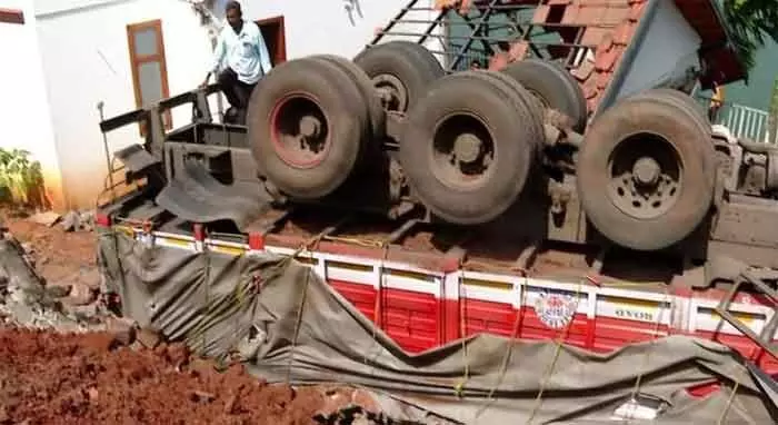 വീടിന്റെ ഒരു ഭാഗം പൂര്ണ്ണമായി തകര്ന്ന അവസ്ഥയിലാണ്. മുറ്റത്ത് ഉണ്ടായിരുന്ന ബൈക്കും ലോറിക്ക് അടിയില് പെട്ടിട്ടുണ്ട്. ഈ ഭാഗത്ത് ആളില്ലാതിരുന്നത് കൊണ്ട് വലിയ അപകടമാണ് ഒഴിവായത്.
