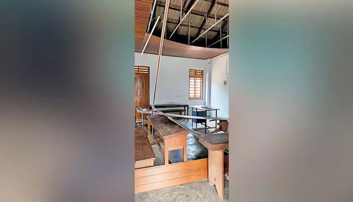 ക്ലാസ് മുറിയുടെ സീലിങ് തകര്ന്ന് വീണു; ഓടിരക്ഷപ്പെട്ട് വിദ്യാര്ത്ഥികള്