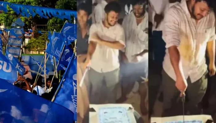 ഗുണ്ടാ നേതാക്കള്ക്കൊപ്പം വടിവാള് കൊണ്ട് കേക്ക് മുറിച്ച് ജന്മദിനാഘോഷം; കെ എസ് യു നേതാവിനെ പുറത്താക്കി