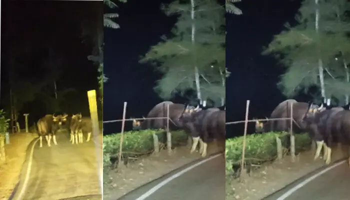 ഏറെ നേരം റോഡില് നിലയുറപ്പിച്ച പോത്തുകള് വാഹനങ്ങള് ഹോണ് മുഴക്കിയിട്ടും മാറാന് തയ്യാറായില്ല. പിന്നീട് ഇരുവശത്ത് നിന്നും എത്തിയ വാഹനങ്ങളില് ഉള്ളവര് ദീര്ഘനേരം ലൈറ്റുകള് തെളിച്ചും ഹോണ് മുഴക്കിയും നടത്തിയ പരിശ്രമത്തിനൊടുവിലാണ് ഇവ റോഡരികിലെ തേയില തേട്ടത്തിലേക്ക് പിന്തിരിഞ്ഞത്.