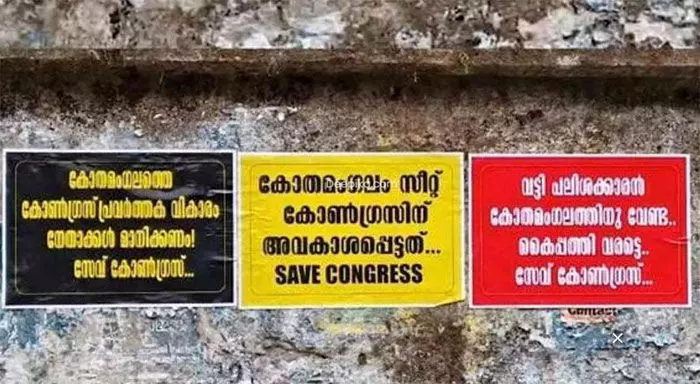 കോതമംഗലത്ത് 'കൈപ്പത്തി' വേണം; കേരള കോണ്ഗ്രസിനെതിരെ കോണ്ഗ്രസില് പടയൊരുക്കം, നഗരത്തില് വ്യാപക പോസ്റ്ററുകള്