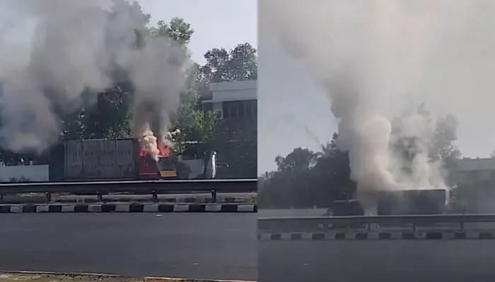 ആരോ ഓണ്ലൈനില് ഓര്ഡര് ചെയ്ത പടക്കം പൊട്ടിത്തെറിച്ചു; പാഴ്സല് ലോറി തൃശൂര് ദേശീയപാതയില് കത്തിയമര്ന്നു