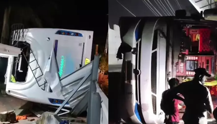 ശനിയാഴ്ച പുലര്ച്ചെ 3.30-ഓടെയാണ് അപകടമുണ്ടായത്. തൃശൂര് സഹൃദയ എന്ജിനീയറിങ് കോളേജ് വിദ്യാര്ഥികള് പഠനാവശ്യത്തിനായി പോകുന്നതിനിടെയാണ് അപകടം. റോഡിന്റെ സമീപത്തുള്ള വീടിന്റെ വശത്തേക്ക് ബസ് മറിയുകയായിരുന്നു. ഡ്രൈവര് ഉറങ്ങിപ്പോയതാണ് അപകടകാരണമെന്നാണ് പ്രാഥമിക നിഗമനം.
