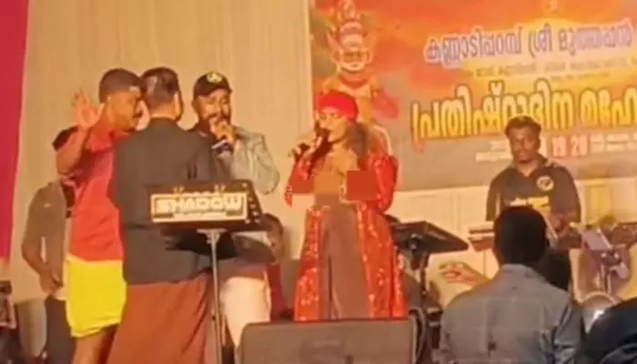 കണ്ണൂരില് ക്ഷേത്രോത്സവത്തിനിടെ ആര് എസ് എസ് ഗണഗീതം ആലപിച്ച് തൃശ്ശൂരില് നിന്നുള്ള ഗായകസംഘം; സ്റ്റേജില് കയറി പാട്ട് നിര്ത്തിച്ച് സിപിഎം പ്രവര്ത്തകര്
