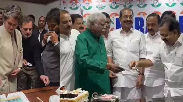 പാര്ലമെന്റ് മന്ദിരത്തില് രാഹുല് ഗാന്ധിയുടെയും പ്രിയങ്കയുടെയും നേതൃത്വത്തില് എംപിമാര് കേക്ക് മുറിച്ചു; വൈറലായി കെ സി യുടെ ജന്മദിനാഘോഷം