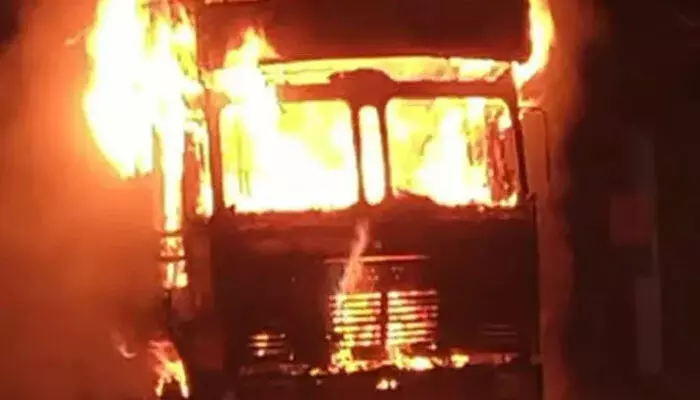 പാലക്കാട് ഓടിക്കൊണ്ടിരുന്ന ലോറിക്ക് തീപിടിച്ചു കത്തി നശിച്ചു