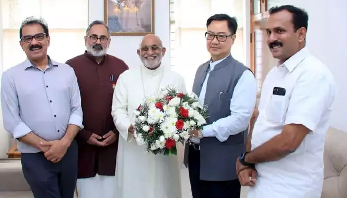 കേന്ദ്രമന്ത്രി കിരണ് റിജിജു സിറോ മലബാര് സഭാ ആസ്ഥാനത്ത്; ക്രൈസ്തവര്ക്ക് അതിന്യൂനപക്ഷ പദവി നല്കണമെന്ന് ആര്ച്ച് ബിഷപ്പ്