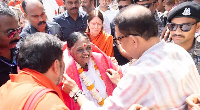 ശ്രീ രാമയന്ത്ര പ്രതിഷ്ഠാ ചടങ്ങ്: അയോധ്യയിലേത്തിയ മാതാ അമൃതാനന്ദമയിയ്ക്ക് ഭക്തിനിര്ഭരമായ സ്വീകരണം