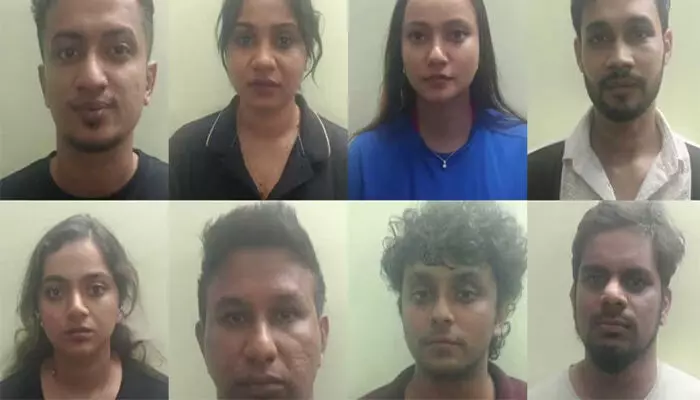 തിരുവനന്തപുരം ശംഖമുഖം സ്വദേശിയും ഇവന്റ് മാനേജ്മെന്റ് ഉടമയുമായ ഷാജി ഫെര്ണാണ്ടോ, കലൂര് സ്വദേശിയായ ഓസ്റ്റിന് ജോസ്, അഭിഭാഷകനായ രോഹിത് നായര്, കൊടുങ്ങല്ലൂര് സ്വദേശി ജിനോ മുരളി, ന്യൂട്രീഷനായ ആലപ്പുഴ നൂറനാട് സ്വദേശി അക്ബര് ഷാ, ദന്ത ഡോക്ടറായ ബെന്സി റാവൂത്തര്, കൊല്ലം സ്വദേശിയും ഫിസിയോ തെറപ്പിസ്റ്റുമായ സെയ്തലവി ഫാത്തിമ, ഏവീയേഷന് വിദ്യാര്ഥിയായ അമല് റൗഫ് എന്നിവരാണ് പിടിയിലായത്. ഇവരില് നിന്ന് ഹൈബ്രിഡ് കഞ്ചാവും കൊക്കയ്നും മെത്താഫിറ്റമിനും പിടികൂടി.