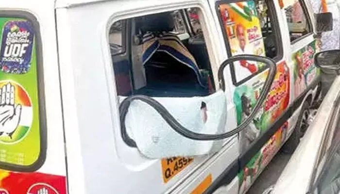 കൊട്ടിക്കലാശത്തിനിടെ എം. ലിജുവിന്റെ പ്രചാരണ വാഹനത്തിന്റെ ഗ്ലാസ് അടിച്ചുപൊട്ടിച്ചു
